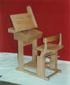 Die Schreibplatte ist für Rechtshänder gestaltet, kann auf Wunsch aber auch für Linkshänder gefertigt werden. Unter der aufklappbaren